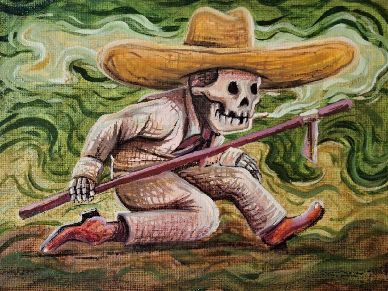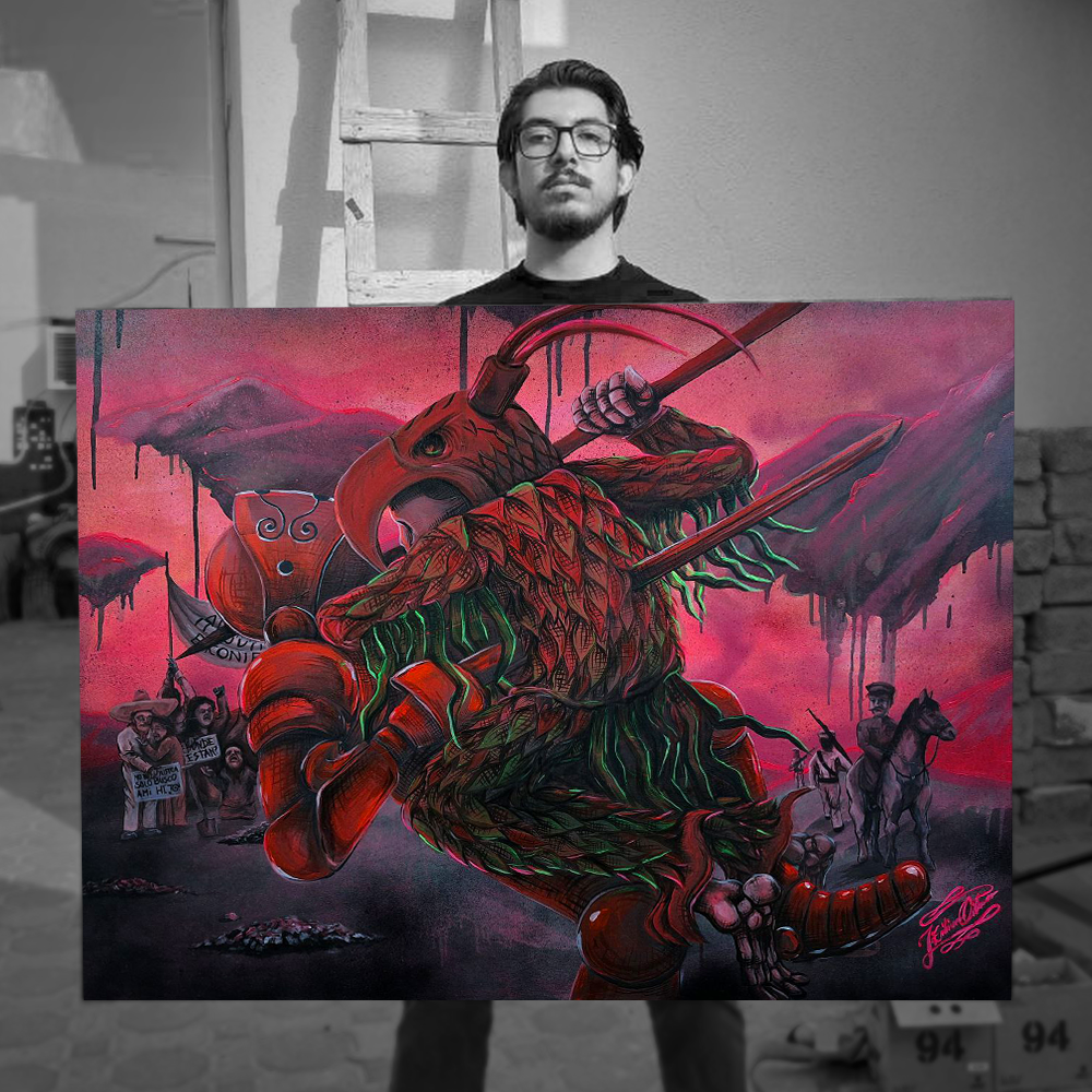 “Campesino” was unveiled on August 7, 2025, during a collective exhibition at La Escalera cultural center, a historic mansion founded in the 1800s in Guadalajara, Jalisco, Mexico. Executed in oil on hard canvas, the work depicts the archetypal Mexican farmer, embodying resilience, labor, and the enduring spirit of rural life. Presented within this emblematic venue, the piece resonates as both a tribute to the countryside and a reflection of Mexico’s cultural identity.